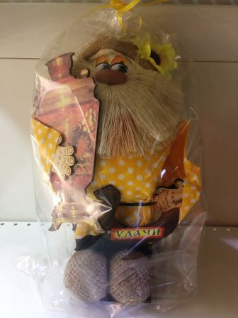 Оберег-копилка ДОМОВОЙ БОЛЬШОЙ В КОЛПАКЕ с самоваром 40см (ДКБК-2)